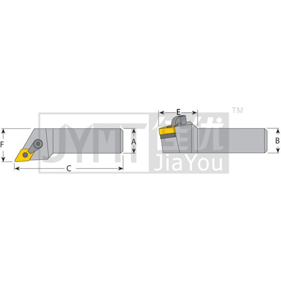 符號說明:A - 柄B - 切削刃高度C - 全長E - 切削頭長度F - 切削頭寬度